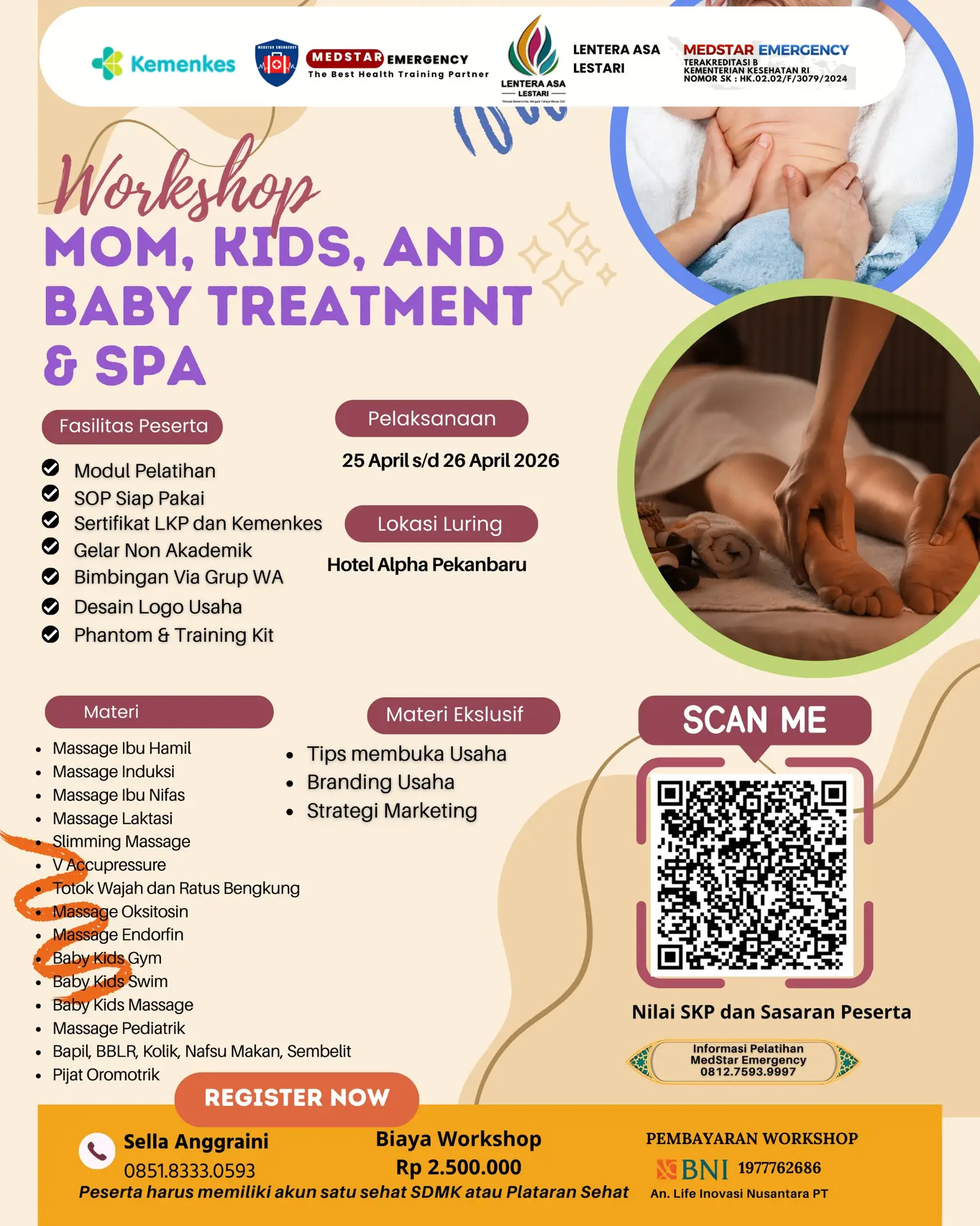 Ikuti Pelatihan “Mom, Kids, and Baby Treatment & SPA” dan pelajari Teknik dan Praktik perawatan untuk Mom & Baby, serta dapatkan Tips Membuka Usaha, Branding, hingga Strategi Marketing-nya!!